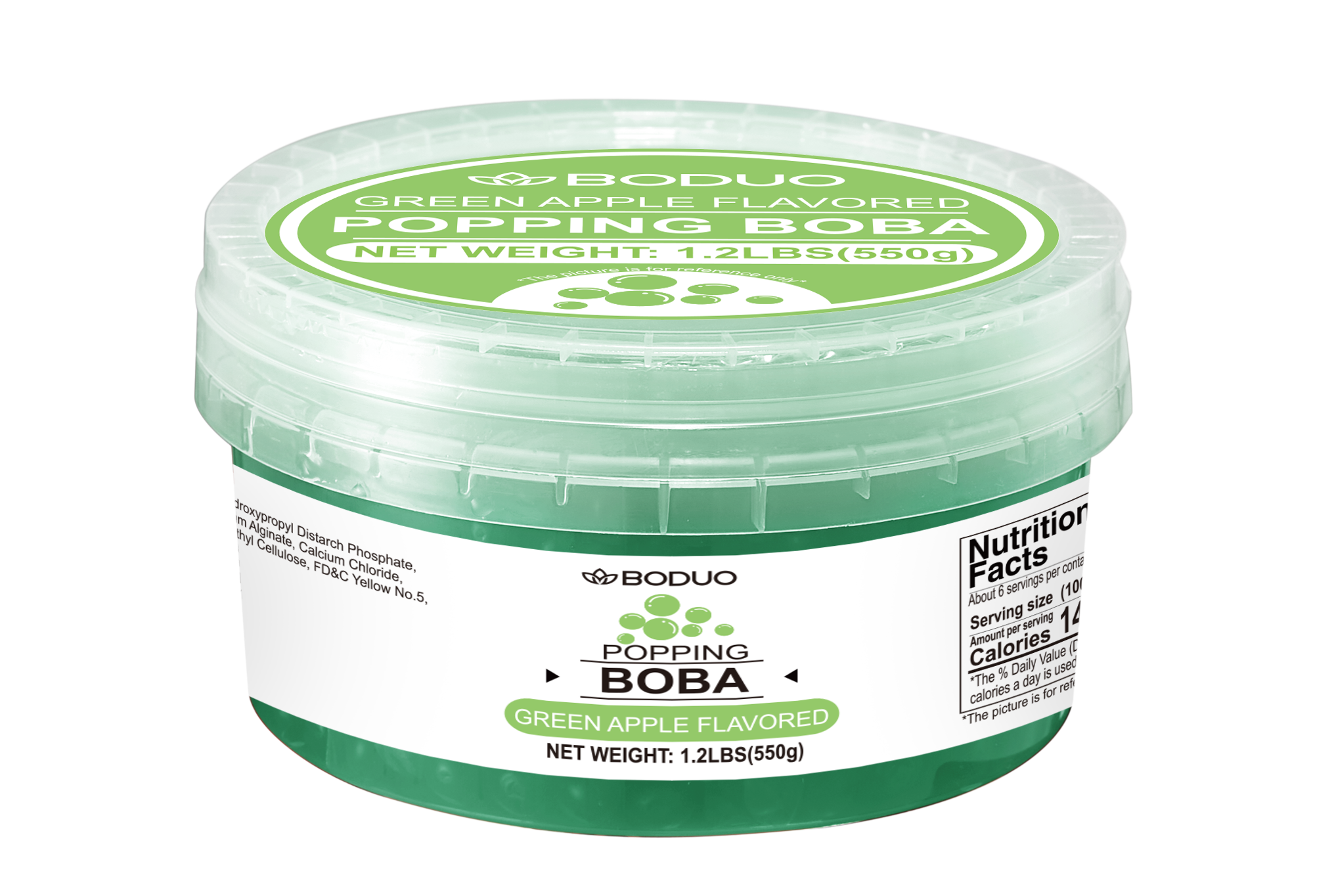 [BODUO] [MINI] Green Apple Flavored Popping Boba 550g - One Bucket [1.2 lbs]