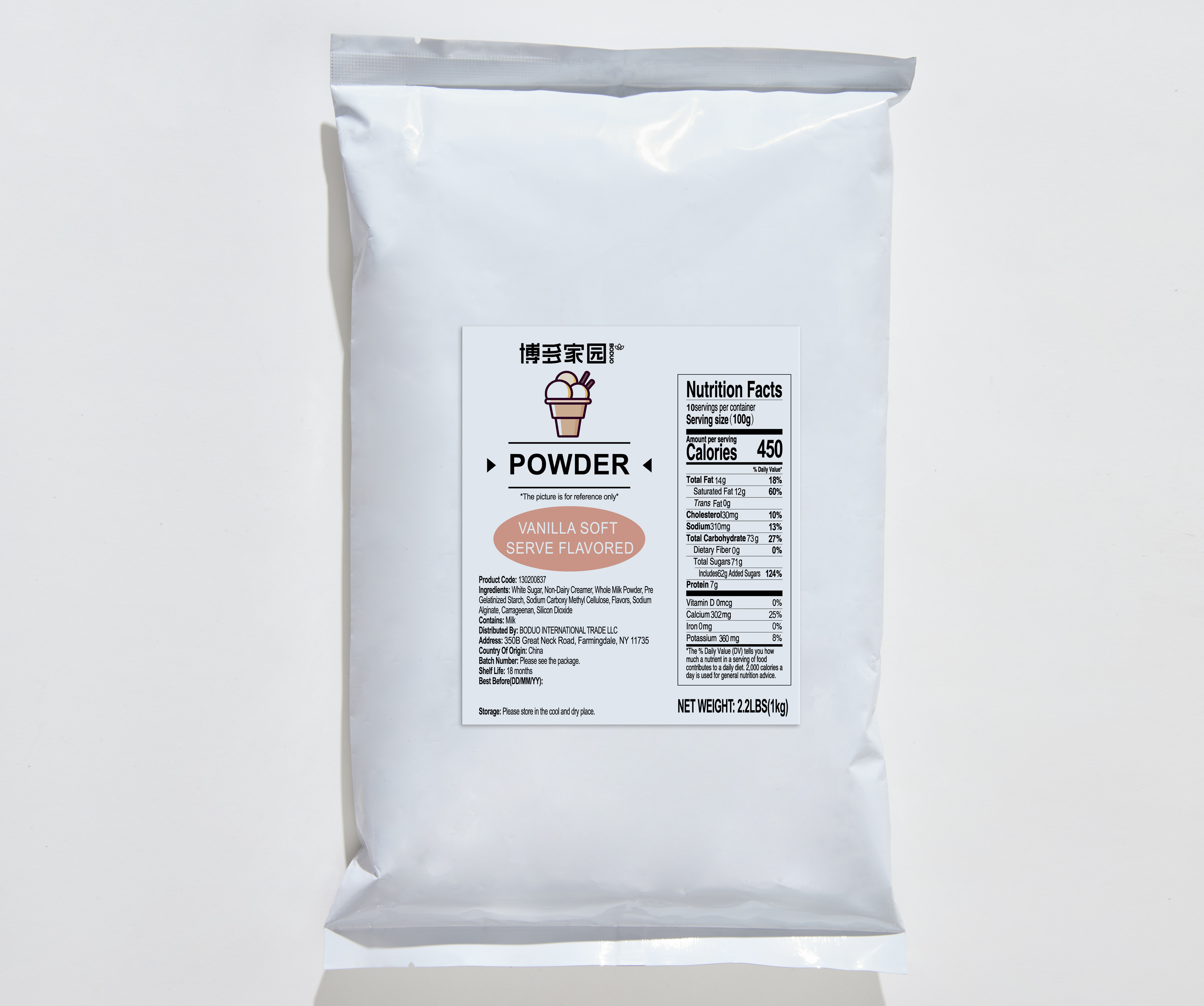 [BODUO] [MINI] Vanilla Flavored Soft Serve Powder - One Bag [2.2 lbs]